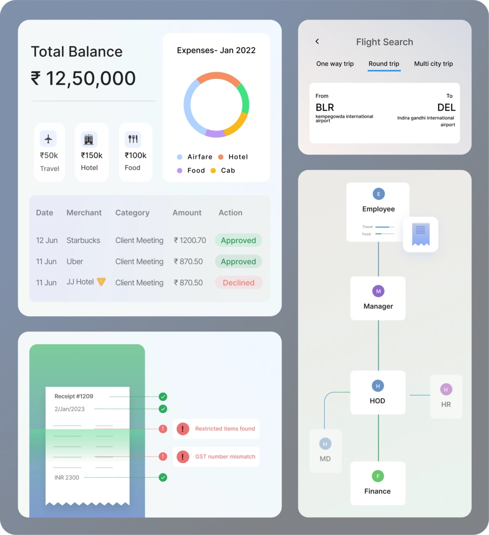 Automatically captures GST details for flights, hotels, and expenses, ensuring compliance and saving up to 5% on flight costs